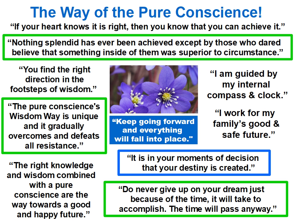 ”WITH THE HELP OF YOUR PURE CONSCIENCE’S WISDOM, THE GREATEST TROUBLES YOU HAVE TO FACE WILL NEVER COME!”